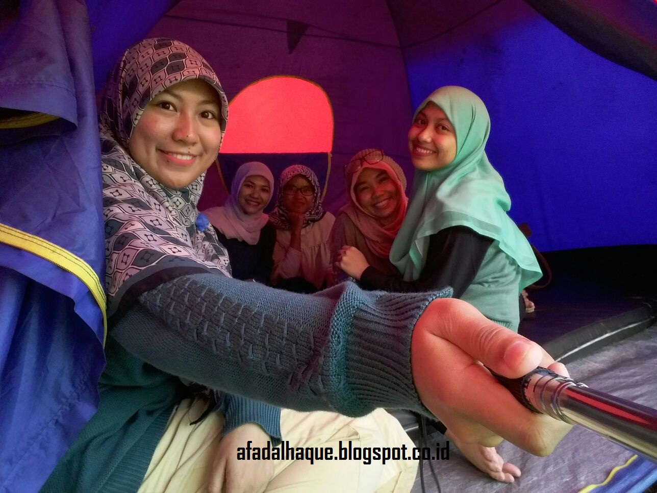 | Suasana di dalam tenda yang nyaman dan cukup luas untuk kami berlima |